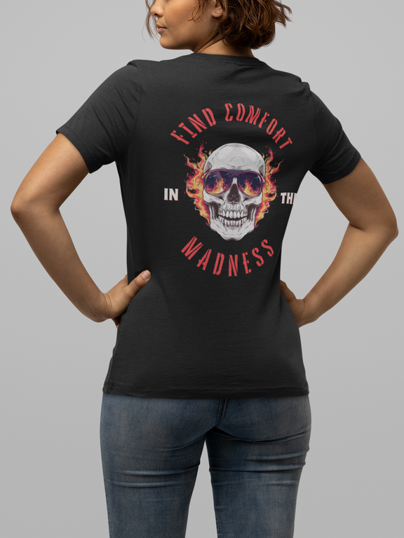 This shirt is for people who find comfort in the madness of life. The chaos life brings. Relevant for adults, this unisex cotton crew tee is made with 100% combed, ring-spun cotton for long-lasting comfort.